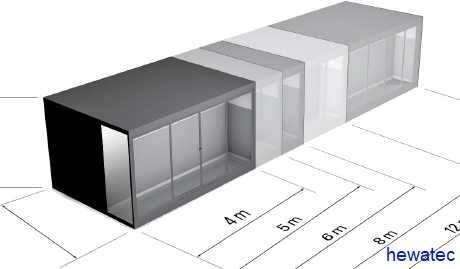 Höhe 2.4 m, Tiefe 3 m, Länge 4 / 5 / 6 / 8 / 12 m